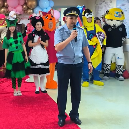 В этом году праздник для наших детей поддержали сотрудники Бостандыкского районного отдела по чрезвычайным ситуациям. Был проведен мастер-класс «Пожарные секреты» в игровой форме. Для наших пациентов символ МЧС Казахстана, Снежный барс, подготовил викторины, кроссворды, ну и конечно подарки победителям.