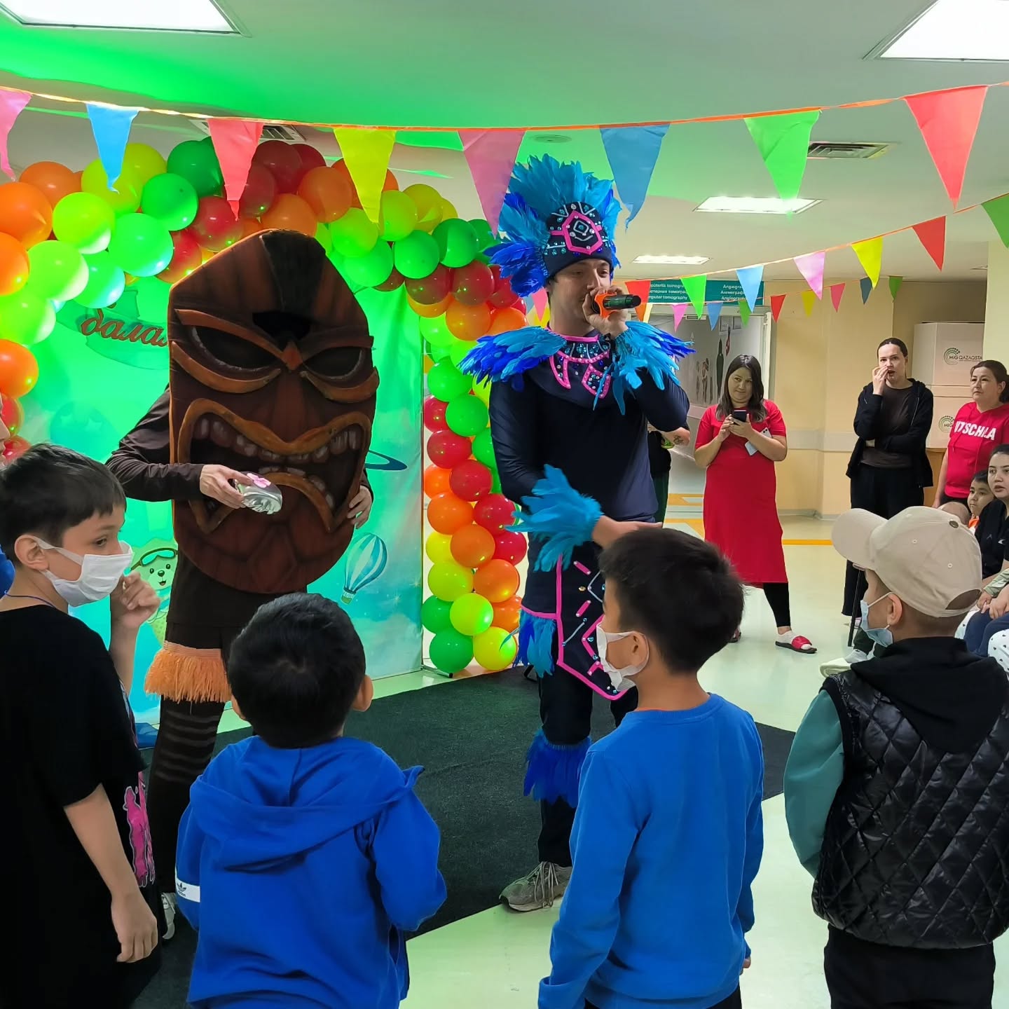 27 мая с 10ч утра начата шоу-программа «Путешествие с Моаной» (при поддержке ОФ «Фонда помощи больным онкологическими заболеваниями Амила»), аниматоры агентств праздников «Море шоу», «Мир шоу» (при поддержке «Казахстанской фондовой биржи») и др. развлекали детей во всех отделениях Центра, особенно в центре детской онкологии и гематологии, где пациенты не могли выйти в зал на основное мероприятие. Всего в проведении праздничных мероприятий откликнулось более 5 агентств аниматоров, за что выражаем огромную благодарность за оказываемую ежегодную благотворительную помощь в проведении таких мероприятий.