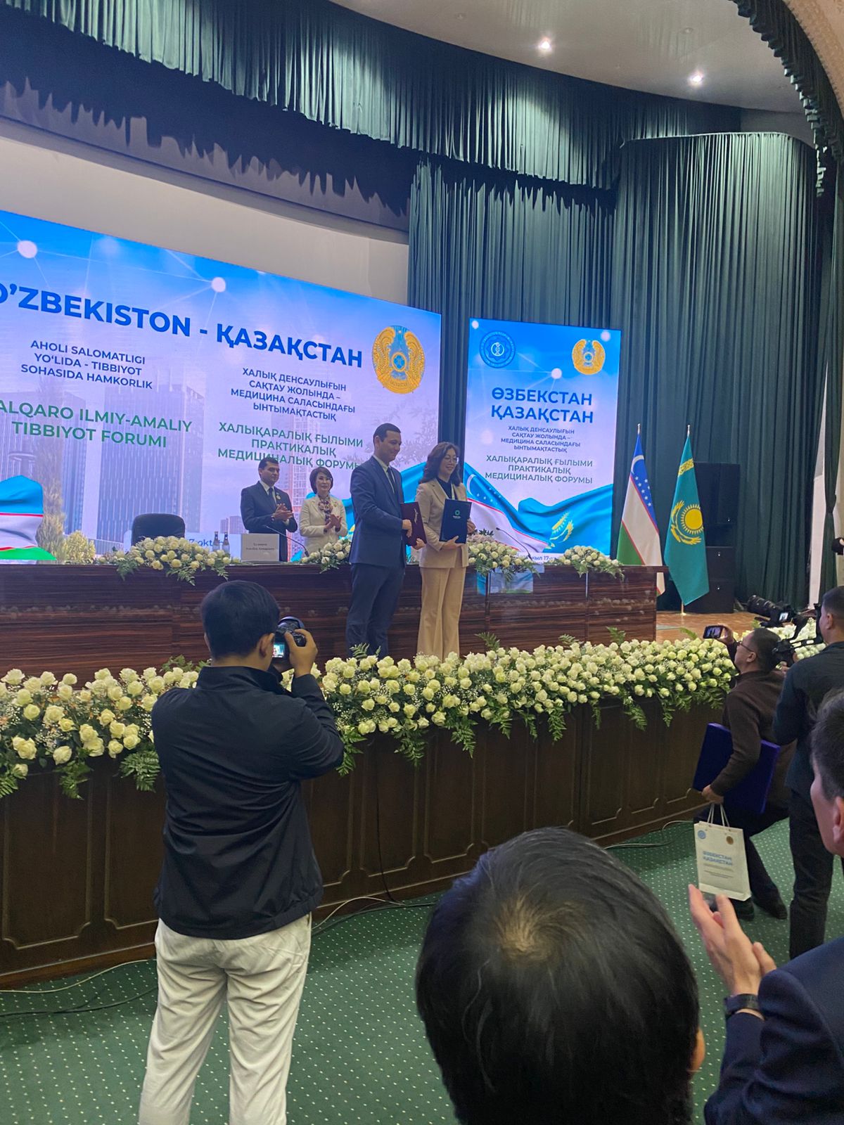 На международном форуме «Казахстан – Узбекистан: сотрудничество в области здравоохранения, технологий и кадров» Главный внештатный детский онколог и гематолог МЗ РК Лязат Манжуова прочитала доклад и обменялась меморандумами с Центром детской онкологии и Национальным детским медицинским центром.