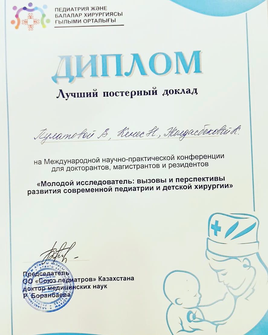 Thus, the intended goals of the congress are to further develop and improve the provision of medical care to children in the Republic of Kazakhstan, using high-tech methods of diagnosis and treatment, as well as to exchange experience and information with scientists from abroad, to strengthen cooperation of professional contacts to achieve high efficiency in treatment and rehabilitation in complex pathologies in children have been achieved.