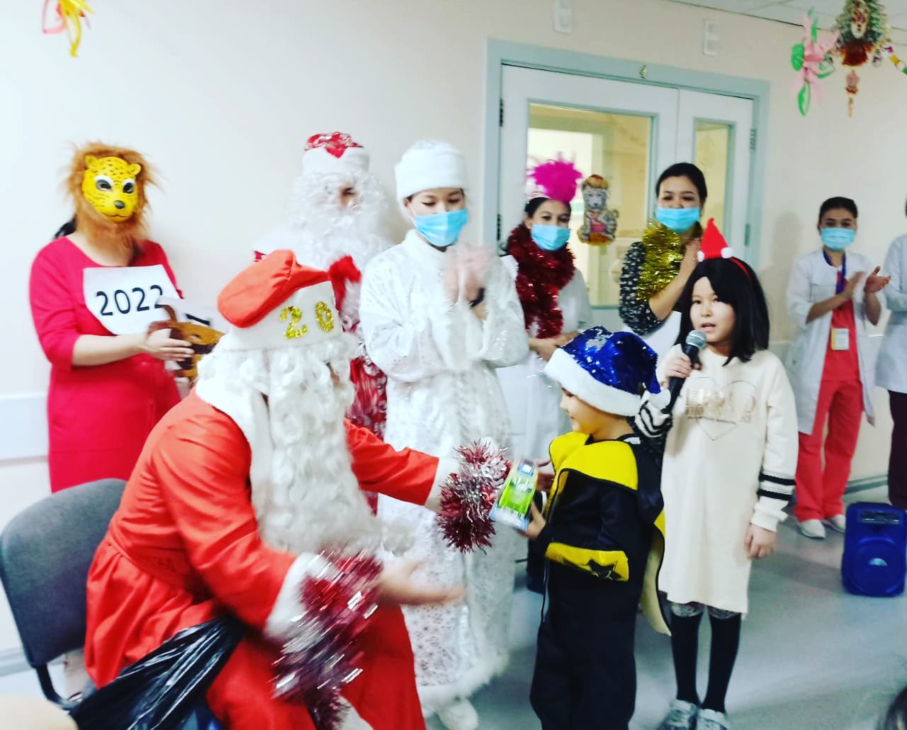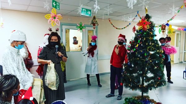 Учитывая карантинных условий, в каждом отделении были организованы небольшие новогодние елки с соблюдением противоэпидемических мер. Руководитель Центра Риза Боранбаева вместе с Дедом Морозом и Снегурочкой поздравила детей и родителей каждого отделения, с наступающим Новым годом. На новогоднем празднике дети пели вокруг елки, рассказывали стихи, показывали свое искусство. Долгожданный любимый праздник подарил радость и хорошее настроение, более 260 детей получили различные подарки от спонсоров.