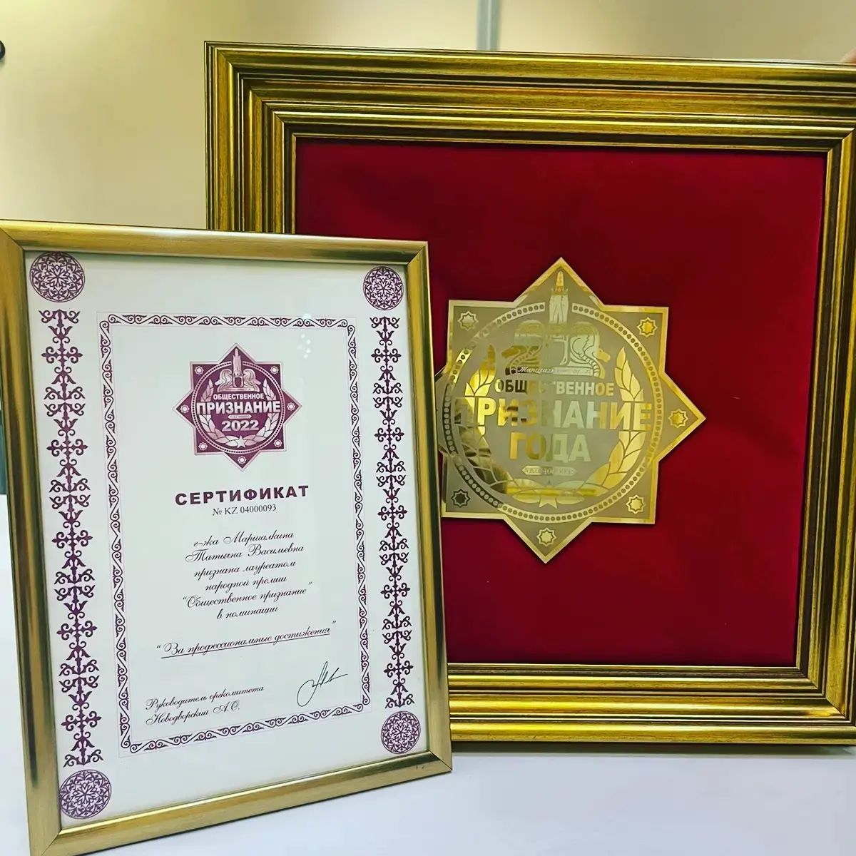 Организационный комитет ежегодной народной премии «Алтын Адам - Человек года» №1 в Казахстане признали лауреатом премии «Общественное признание» врача НЦПДХ Маршалкину Татьяну Васильевну за плодотворный труд в области охраны здоровья детей и вклад в развитие системы здравоохранения РК.