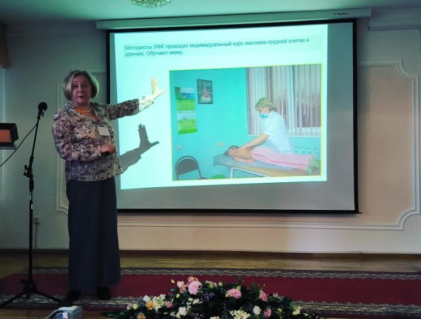 С приветственной речью перед участниками мастер-класса выступила председатель Совета директоров д.м.н., проф. Омарова М.Н., которая подчеркнула, что данный мастер-класс приурочен 60-летнему юбилею пульмонологического отделения нашего Центра. «Отделение пульмонологии в нашем Центре было создано в 1962 году. Первым руководителем отделения была Тен О.Д. В становлении научно-клинического раздела по детской пульмонологии большой вклад внесли академик Ормантаев К.С, проф. Омарова К.О., проф. Байжанова М.М. и другие специалисты. На протяжении всего периода существования отделения пульмонологии уделялось большое внимание детям больным муковисцидозом. Благодаря упорному труду врачей из года в год улучшается выявляемость редких, генетических заболеваний. На сегодняшний день налажена диагностика и лечение этого заболевания, ведется собственный регистр пациентов с муковисцидозом. Благодаря внедрению новых технологии лечения улучшилось качество жизни больных, увеличилась продолжительность жизни. И большим достижением наших пульмонологов является факт, что то на сегодня есть пациенты, достигшие своего совершеннолетия и переведенные под наблюдение взрослых пульмонологов», - отметила Мариям Нургалиевна.