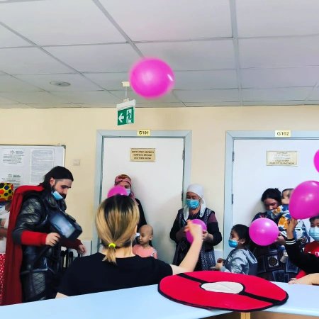 Для наших маленьких пациентов, борющихся со злокачественными заболеваниями, были организованы развлекательные программы. Дети играли, танцевали и веселились с аниматорами. Каждому ребенку подарено различные подарки,  разноцветные шары, соки,  выпечки и фрукты. Игровые программы прошли во всех отделениях онкологии и гематологии.
