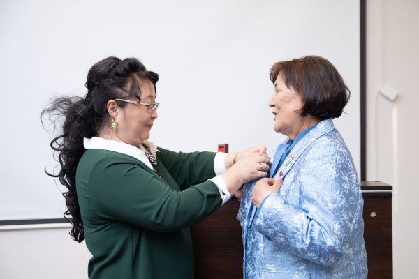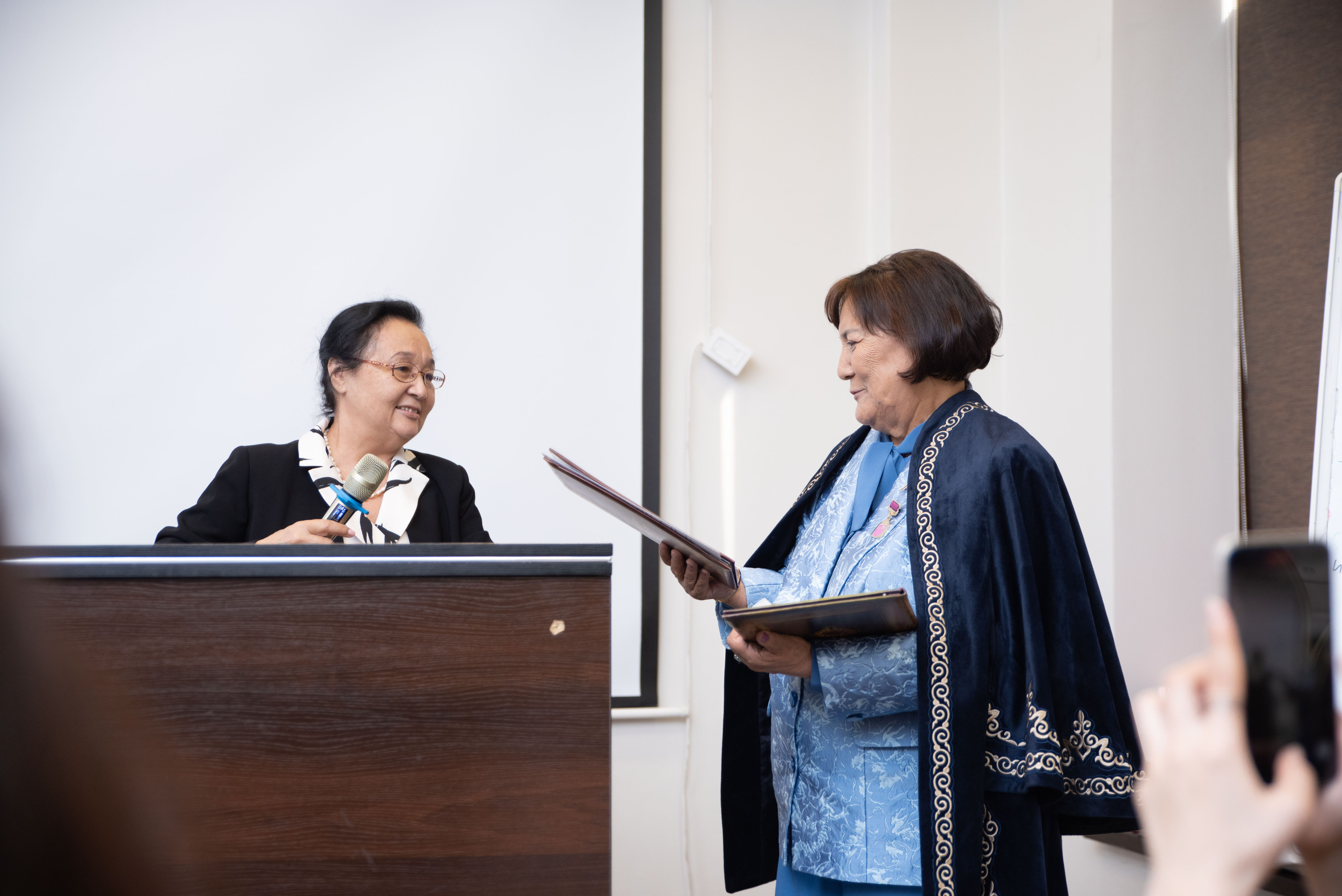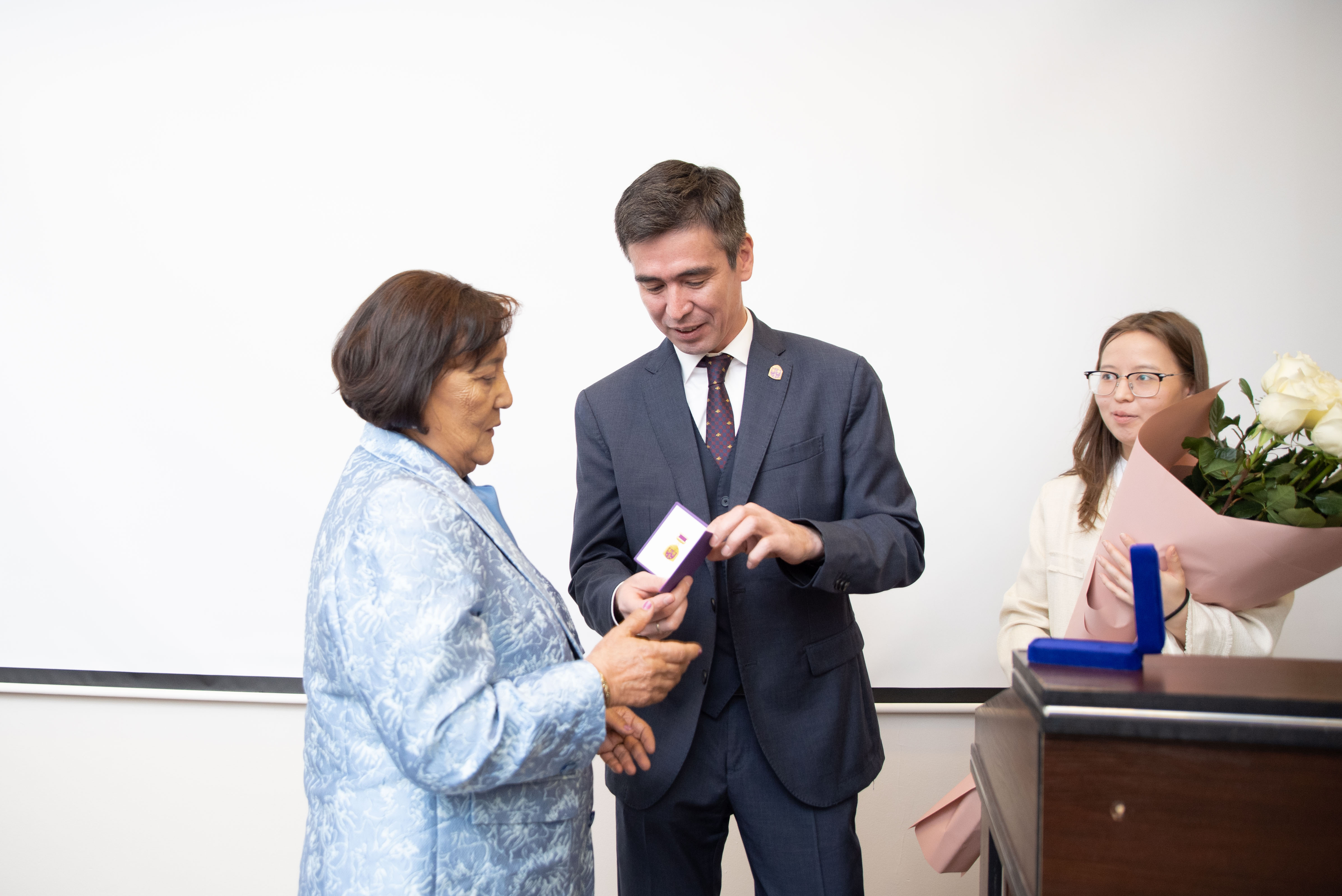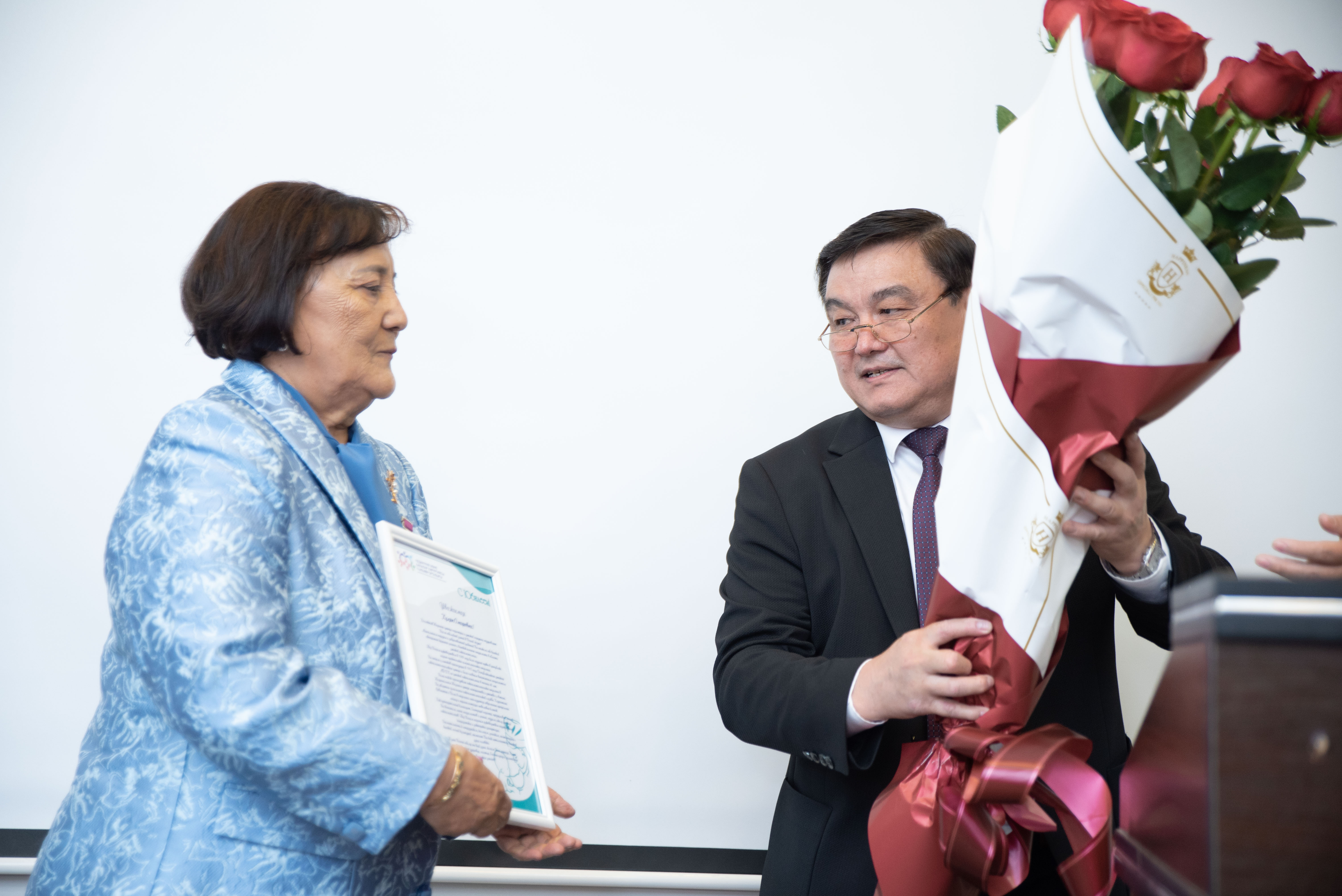 President of the Republican Public Association "National Medical Association" Aizhan Sadykova presented Kulyan Omarovna with the highest award "Order of Hippocrates" for her great contribution to the development of national healthcare and selfless work for the benefit of the health of the people of Kazakhstan.