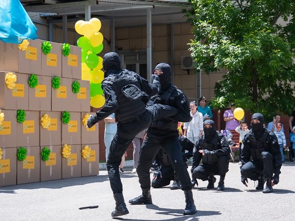 The children were impressed by the performance of the cadets of the Makan Esbolatov Academy of the Ministry of Internal Affairs. They performed patriotic songs and showed hand-to-hand combat.