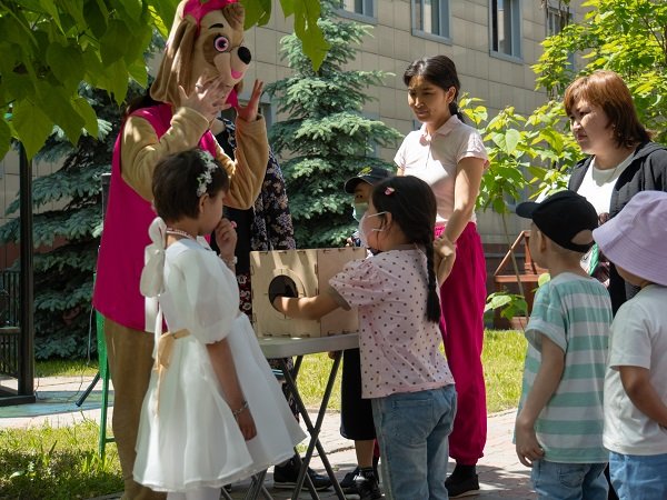 During the holiday, children could take a professional photo in a specially designated photo area with a team of animators dressed in their favorite cartoon characters. Animators and volunteers of the Kazakhstan Stock Exchange played various games with children, danced and thereby supported the festive mood of the children.