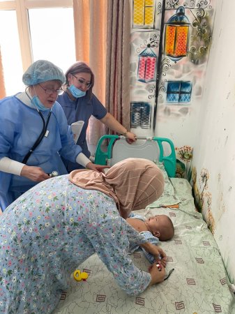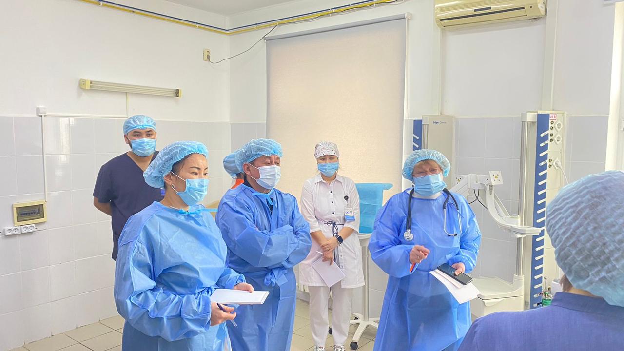 Выезд в область был осуществлен в составе группы специалистов: главного внештатного детского пульмонолога МЗ РК, врача отделения пульмонологии Маршалкиной Т. В., заведующим отделением хирургии №2 Жумадуллаевым Б.М., заведующей кафедрой неонатологии НАО «КазНМУ им. С.Д. Асфендиярова» Божбанбаевой Н. С., врачом хирург-неонатологом отделения неонатологии и хирургии новорожденных Каукенбаевой Г.Т., врачом анестезиолог-реаниматологом ОАРИТ старшего возраста Шекеновой А.Б.