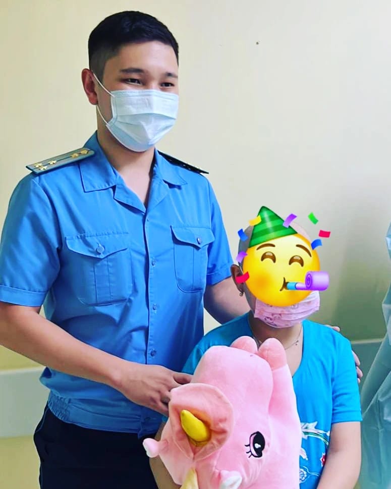 Халықаралық балаларды қорғау күні аясында Алматы қаласының прокуратурасы Педиатрия және балалар хирургиясы ғылыми орталығында ем алып жатқан қатерлі дертке шалдыққан балаларға түрлі сыйлықтар табыстап, балаларға мерекелік көңіл күй сыйлады.