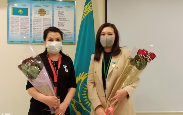 Медалью «Халық алғысы» награждены Председатель Правления АО «НЦПДХ» Риза Боранбаева и врач онкогематолог Айгерим Биболатова,