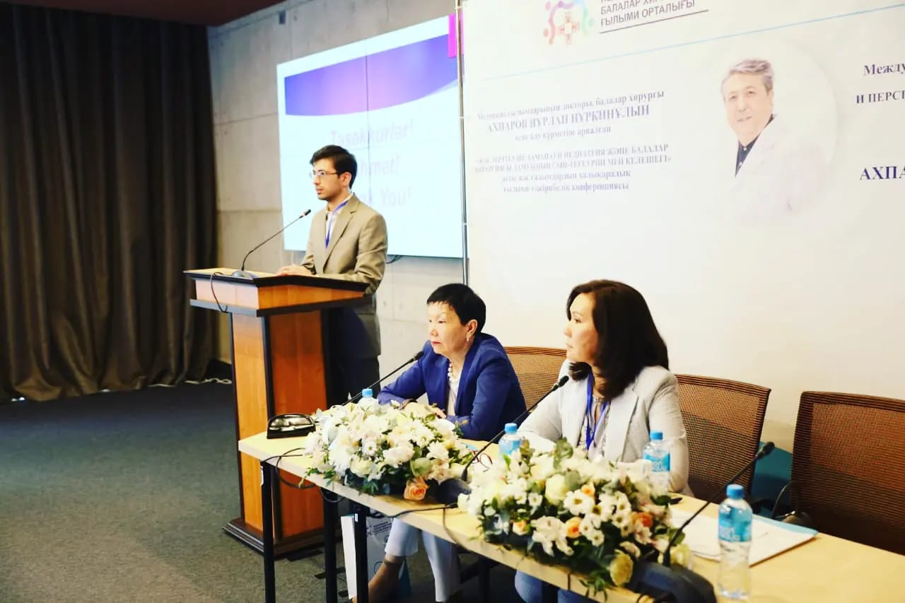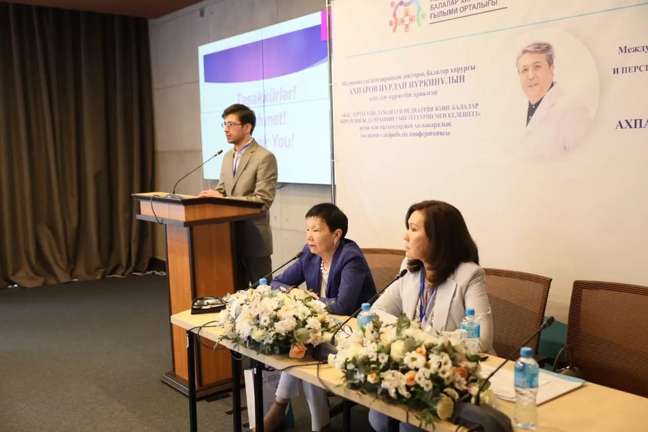 В этом году наша конференция для молодых ученых стала данью памяти нашему коллеге, детскому хирургу с «золотыми руками», заведующему отделения хирургии Научного центра педиатрии и детской хирургии, доктору медицинских наук, учёному с международным именем, почётному профессору Cincinnati Clinic США, Академику Европейской Академии естественных наук Ахпарову Нурлану Нуркиновича.