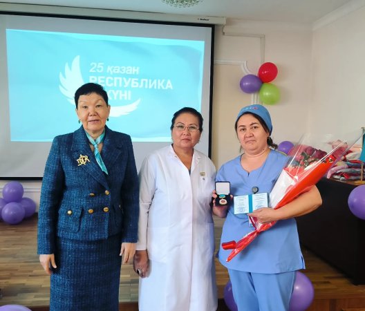 Медалью «Денсаулық сақтау ісінің үздігі» награждены: врач-уролог отделений урологии Чокан Турсбеков, специалист лаборатории Бейбиткул Иманбекова, медсестра Хельчям Сулайманова, медсестра Ардак Кабыкбаева.