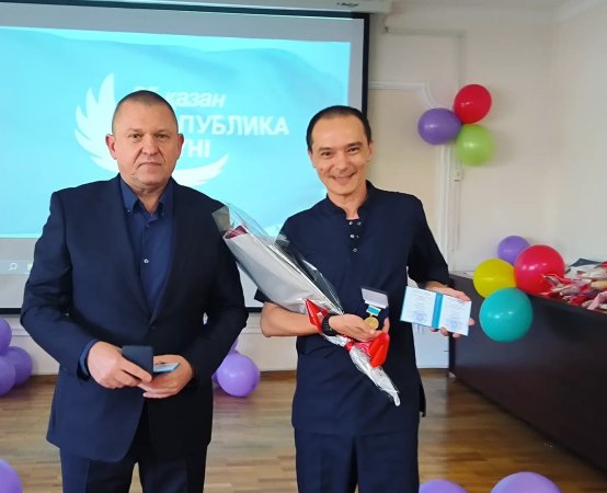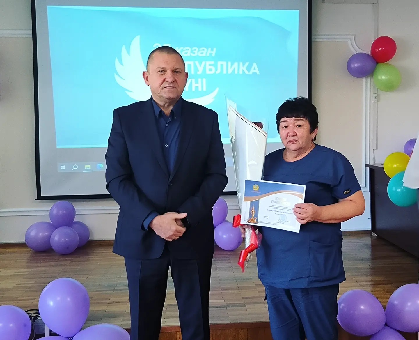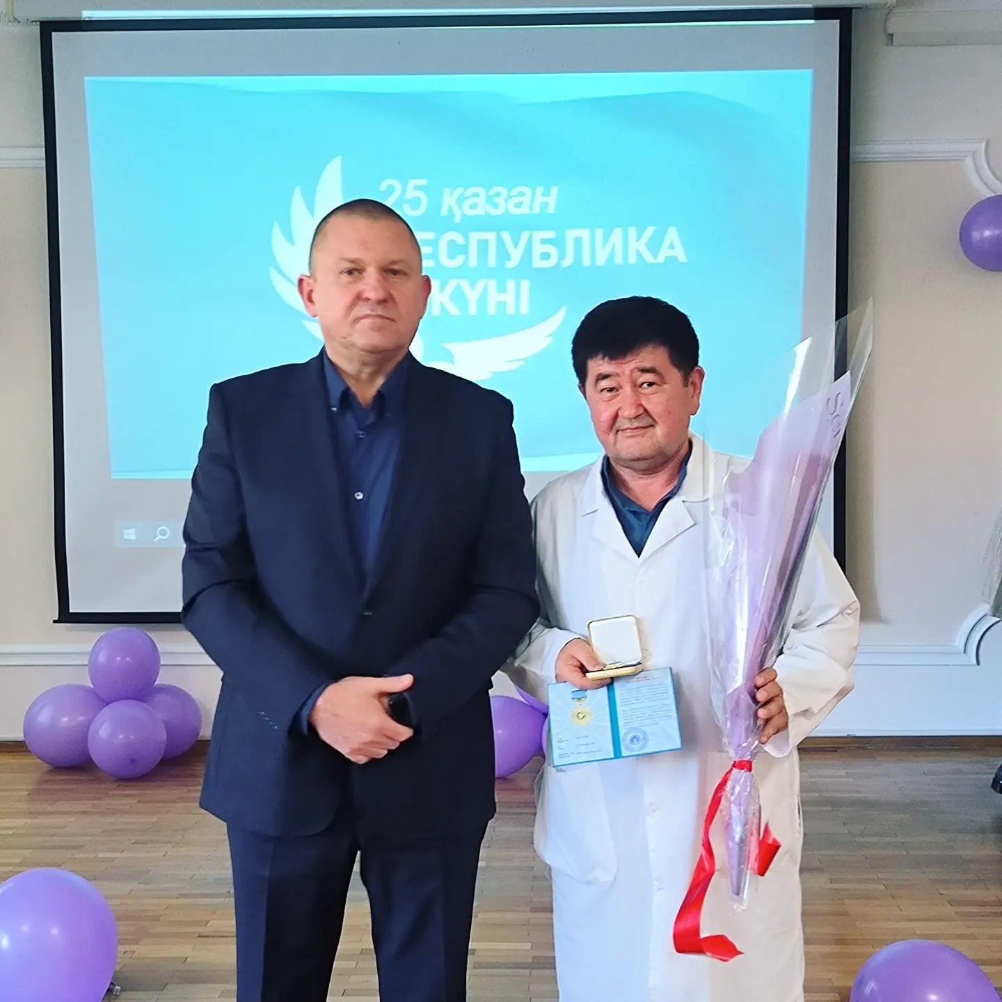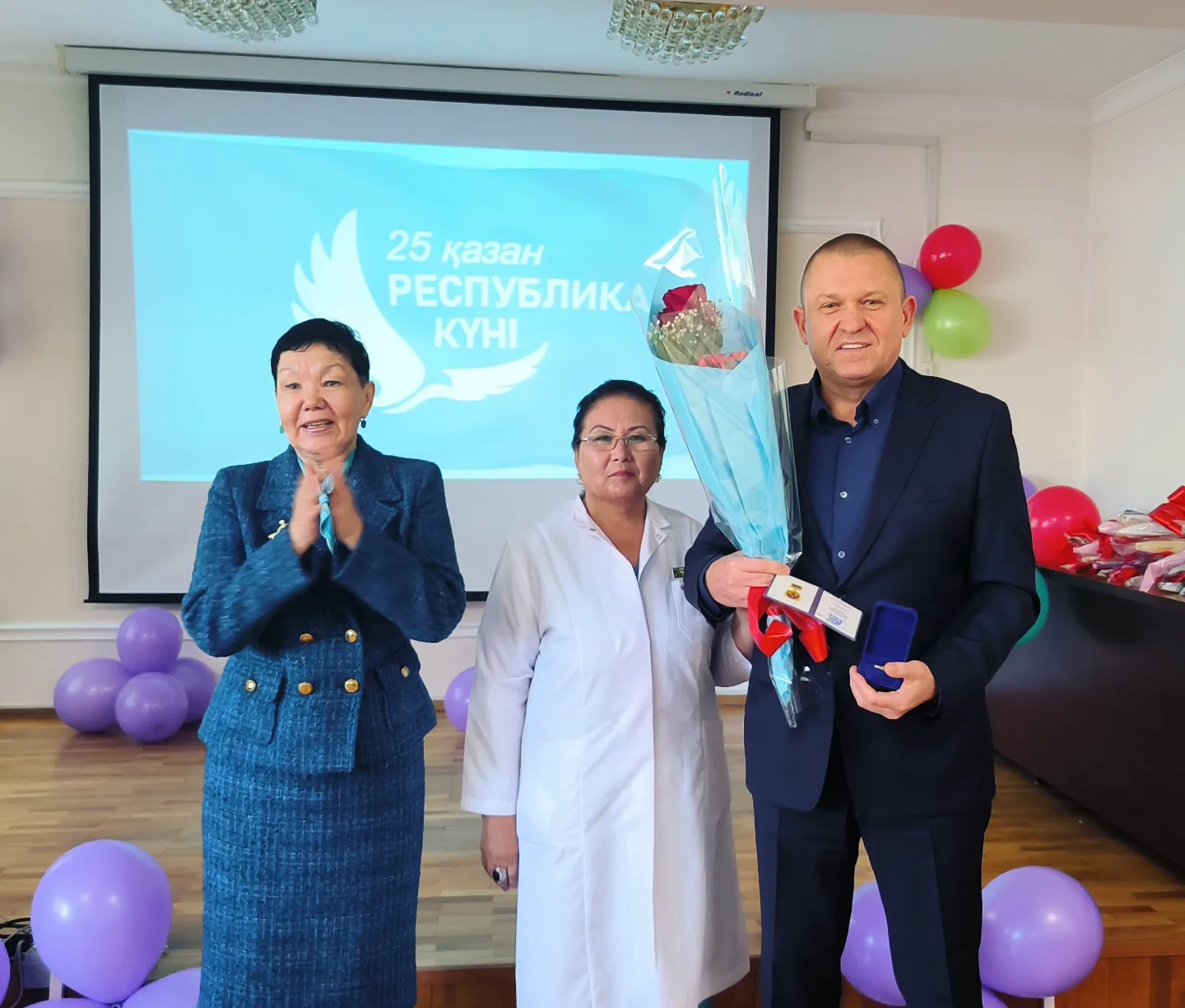 В ходе торжественного собрания заведующий отделения лучевой диагностики Сундет Саргелов был награжден нагрудным знаком общественного объединения «Отраслевой профессиональный союз работников здравоохранения Казахстана».