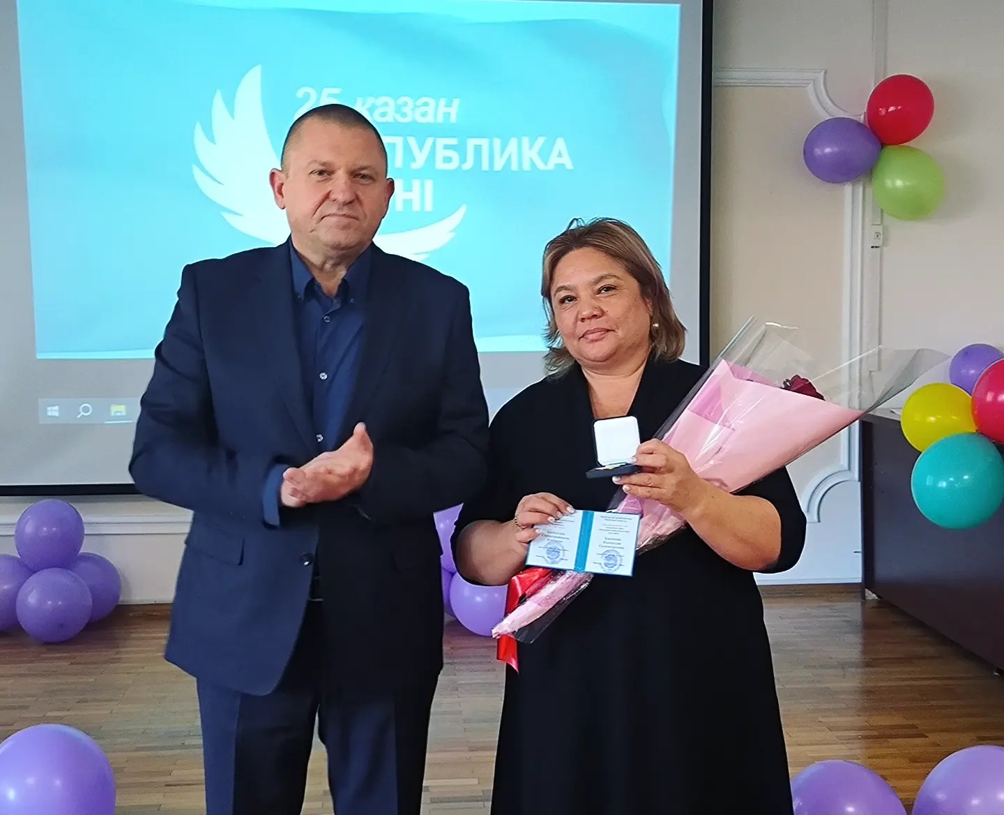 В канун праздника ряд специалистов центра также были награждены медалями КазНМУ имени С.Ж.Асфендиярова. В частности, за особый вклад в развитие университета Руководитель хирургического блока Константин Хаиров награжден знаком «Ветеран КазНМУ», Руководитель центра детской онкологии и гематологии Гульнара Абдилова награждена Золотой медалью КазНМУ, ст. медсестра Гульбану Омарова награждена Серебряной медалью, медсестра Халидам Юсупова награждена бронзовой медалью. А старший специалист отдела кадров Гульнур Рыскельдиева награждена Почетной грамотой, инженер Дуйсебай Ерканат награжден Благодарственным письмом КазНМУ.
