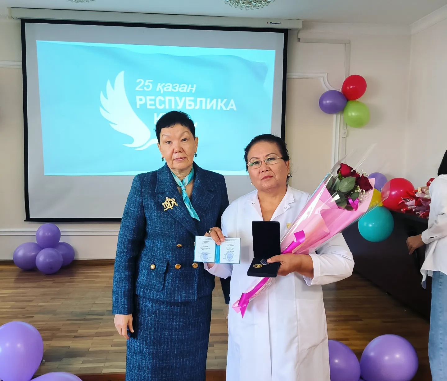 Жакауова Нурбиби Еркебаевна, более 40 лет посвятившая свою жизнь здоровью детей награждена медалью «Ветеран труда».