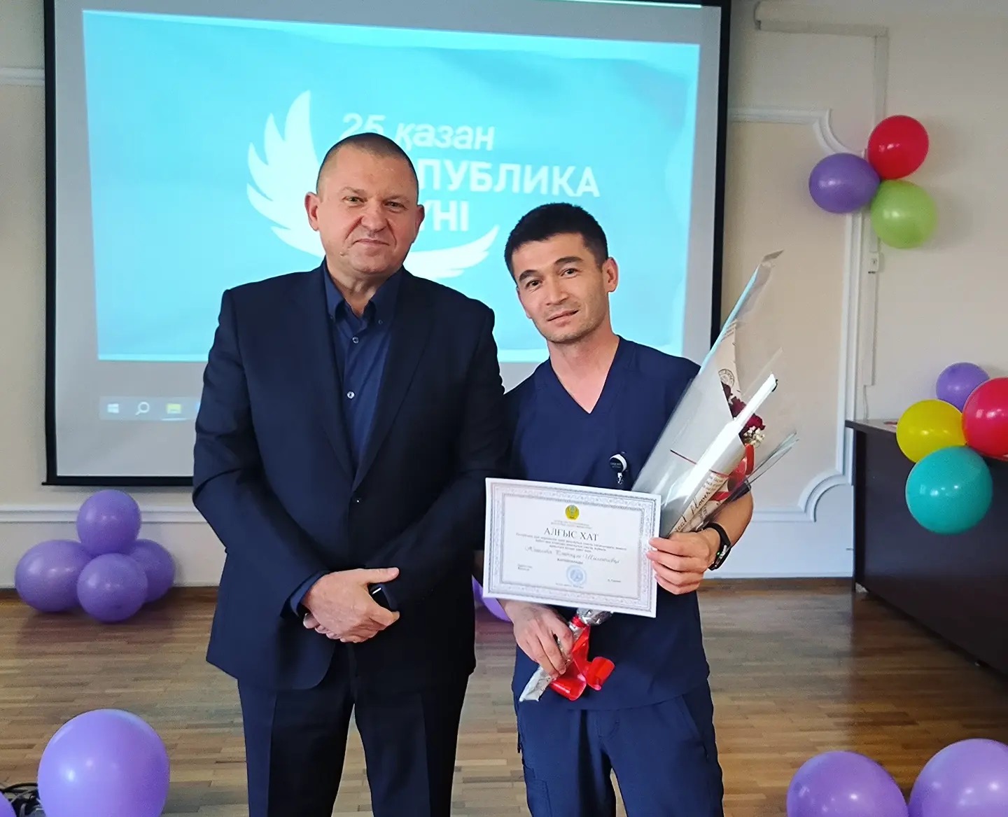 Благодарственным письмом Министерства здравоохранения РК «За безупречный добросовестный труд и вклад в дело здравоохранения» награждены: заведующий сектором эндоскопии Нышанбек Шиланбаев, воспитатель Куляш Жазыкбекова, медсестра Альбина Борамбаева, сестра-хозяйка Гульнур Кулумканова.