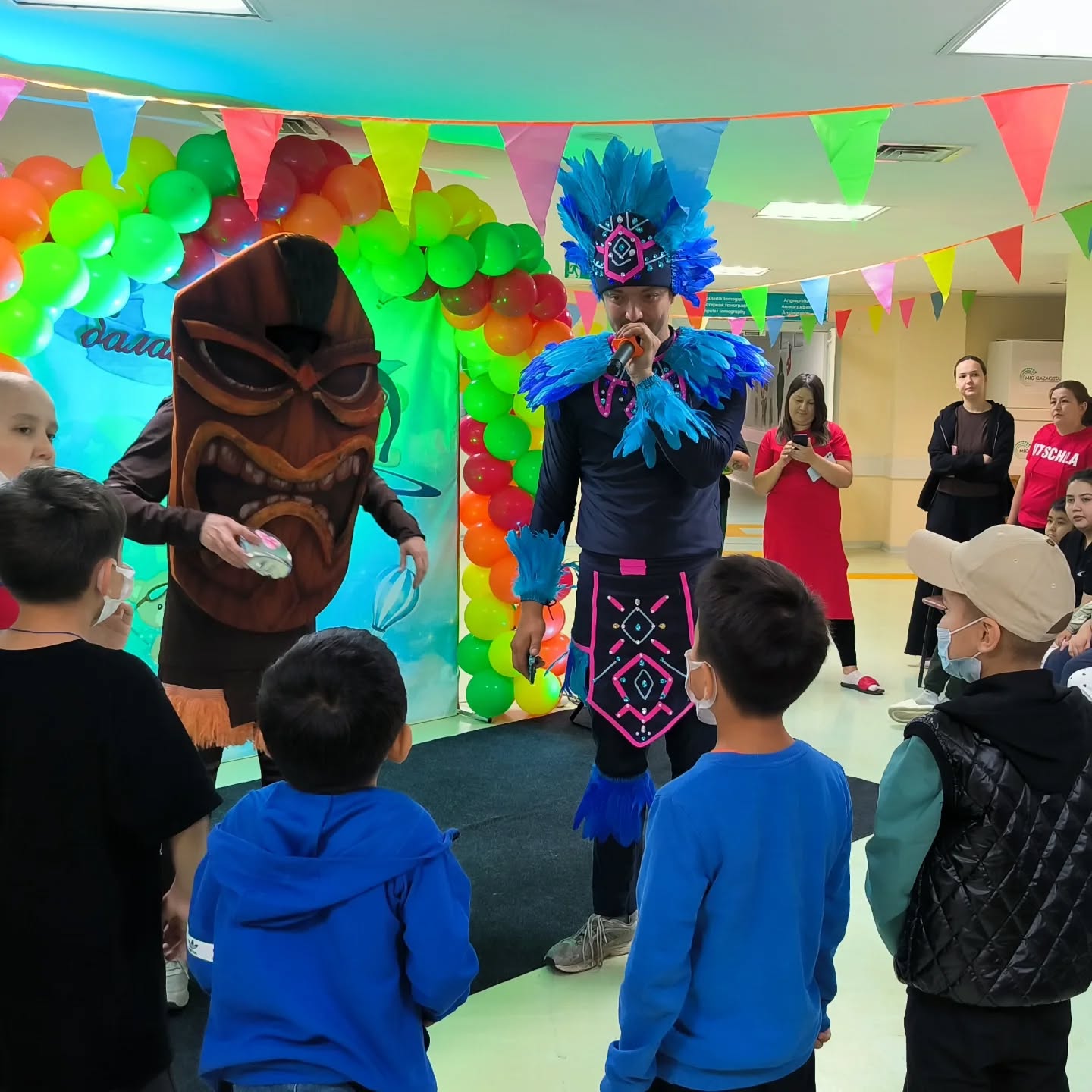27 мая с 10ч утра начата шоу-программа «Путешествие с Моаной» (при поддержке ОФ «Фонда помощи больным онкологическими заболеваниями Амила»), аниматоры агентств праздников «Море шоу», «Мир шоу» (при поддержке «Казахстанской фондовой биржи») и др. развлекали детей во всех отделениях Центра, особенно в центре детской онкологии и гематологии, где пациенты не могли выйти в зал на основное мероприятие. Всего в проведении праздничных мероприятий откликнулось более 5 агентств аниматоров, за что выражаем огромную благодарность за оказываемую ежегодную благотворительную помощь в проведении таких мероприятий.