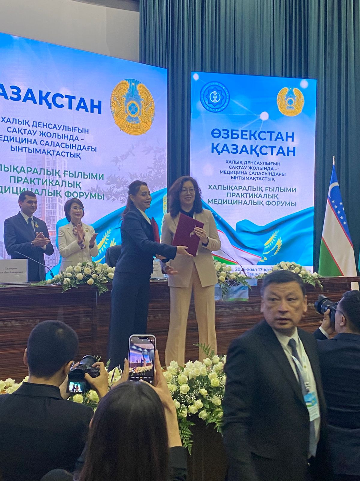 На международном форуме «Казахстан – Узбекистан: сотрудничество в области здравоохранения, технологий и кадров» Главный внештатный детский онколог и гематолог МЗ РК Лязат Манжуова прочитала доклад и обменялась меморандумами с Центром детской онкологии и Национальным детским медицинским центром.