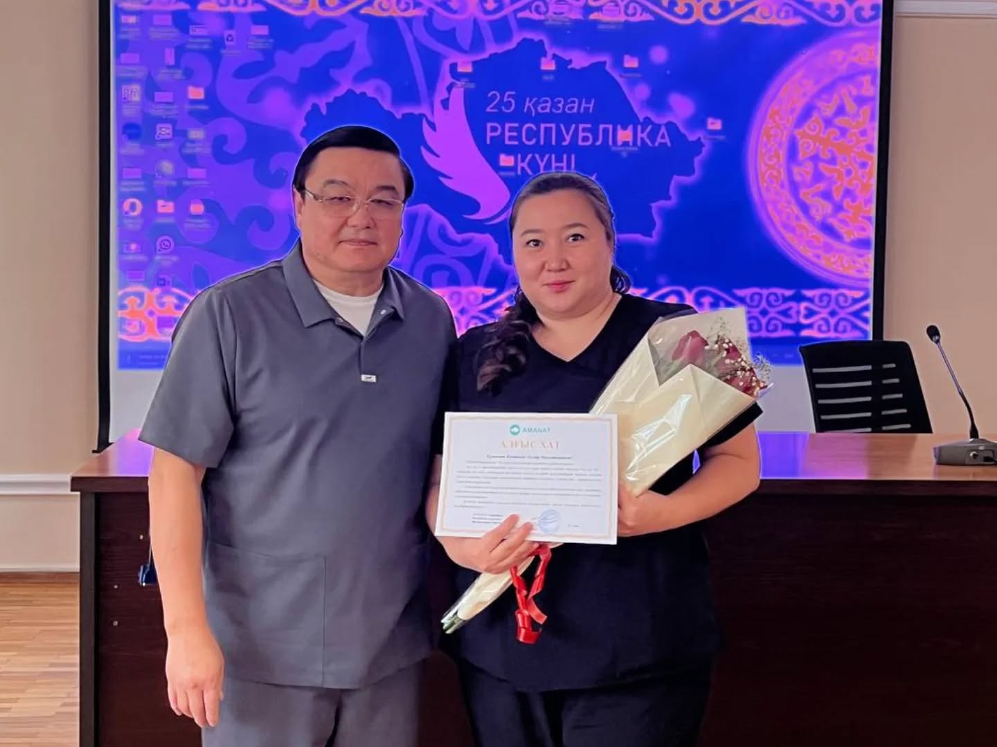 Кроме того, в ходе торжественного собрания Благодарственными письмами от партии «AMANAT» были награждены эпидемиолог Центра Жанна Тынысбекова, детский хирург Молдир Калабаева, экономист Динара Скакова, заведующий отделением лучевой диагностики Сундет Саргелов и медсестра онкологического отделения №1 Аккенже Койшыбаева.